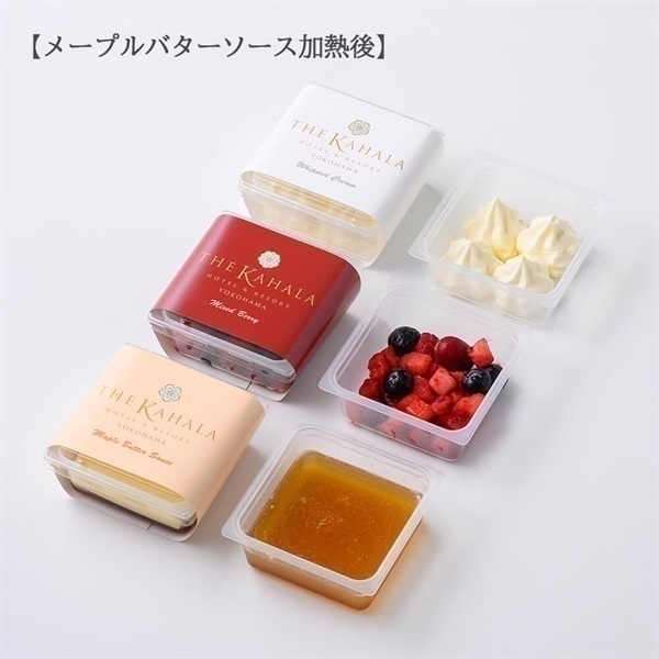 オリジナルメープルバターソースを絡めたザ・カハラ・ホテル&リゾート 横浜でも大人気のスイーツ「ザ・カハラ・クラシック・シンパンケーキ」。ハワイ伝統の味をご自宅でもお召し上がりいただけるよう再現しました。熱々のシンパンケーキに、濃厚なメープルバターソースを絡め、相性ピッタリなホイップクリームとミックスベリーを添えて、優雅なハワイアンティータイムをお楽しみください。