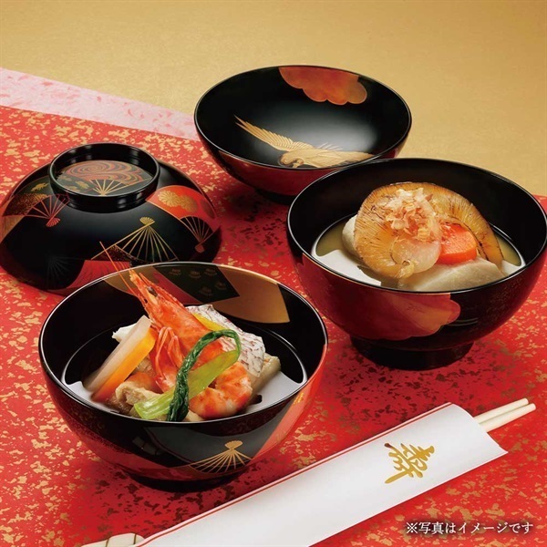 国産素材にこだわり、鯛・車海老・鶏肉とこだわりの素材と野菜を使用しただしが決め手の、すまし仕立ての特製お雑煮です。
