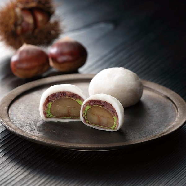 ラム酒にじっくり漬け込んだ大粒の渋皮栗に、つぶ餡とほろ苦い抹茶クリームを合わせた大福です。コーヒーとの相性も抜群です。