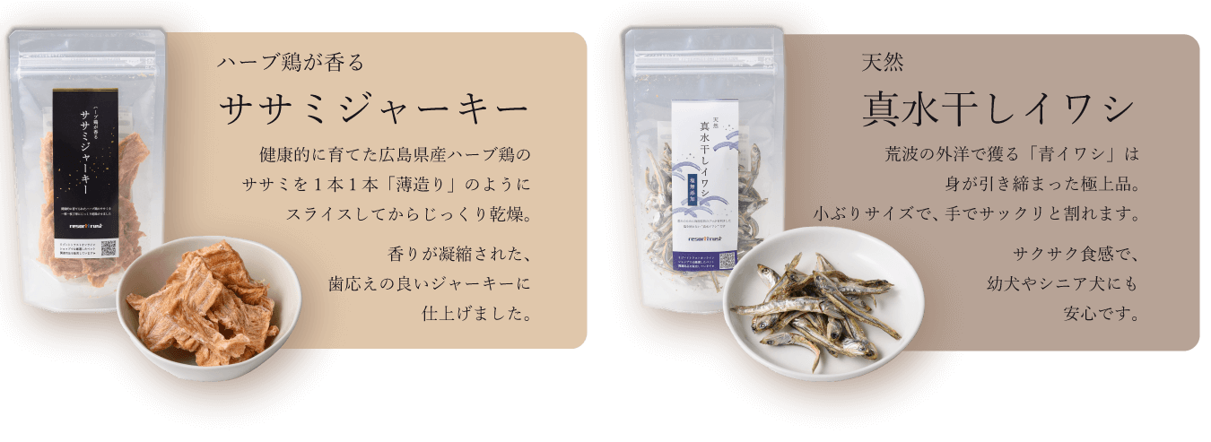 <リゾートトラストオリジナル>【10個セット+おまけ】天然真水干しイワシ(30g×5)、ハーブ鶏が香るササミジャーキー(50g×5)